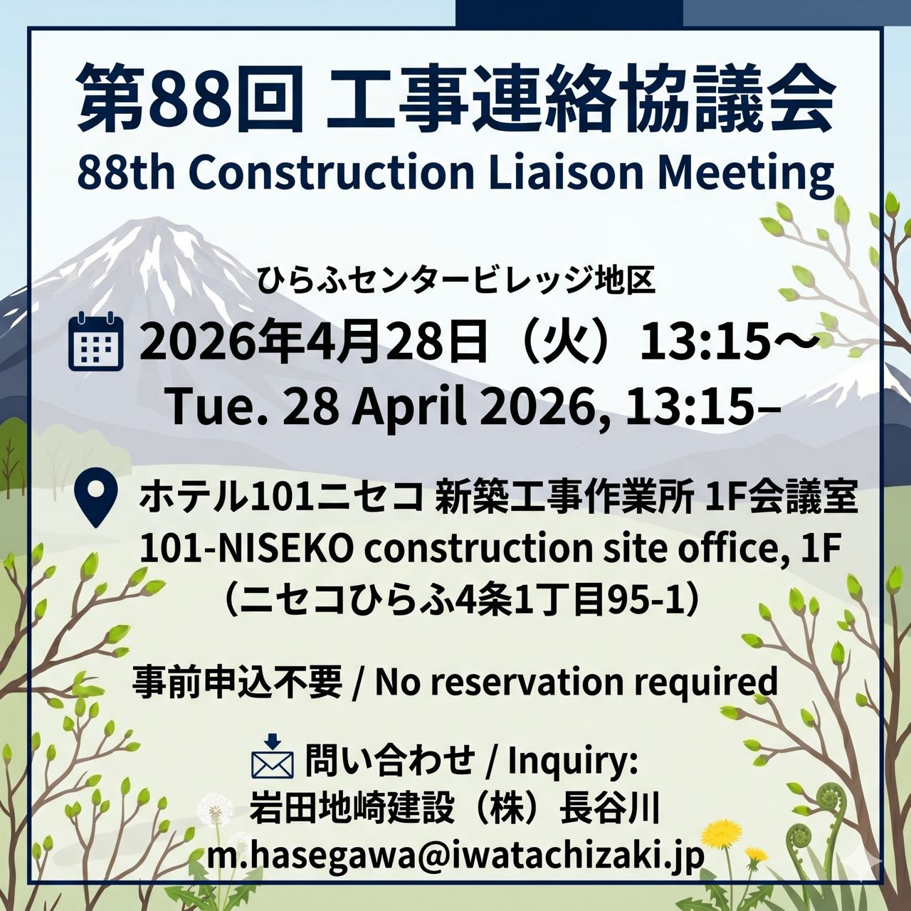 【ひらふセンタービレッジ地区 第88回 工事連絡協議会のお知らせ/88th Construction Liaison Meeting】